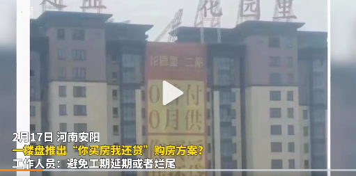 河南安阳一楼盘发布“0首付0月供,你买房我还贷”的宣传广告,2月17日冲上热搜榜。