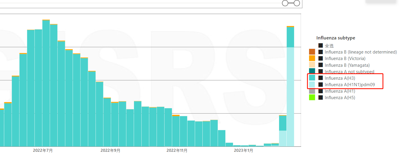 世卫组织表示,到2022年12月底,中国的流感主要是A(H3N2),自2023年2月以来的流感感染上升是因为A(H1N1)pdm09和A(H3N2)两种亚型的同时传播。