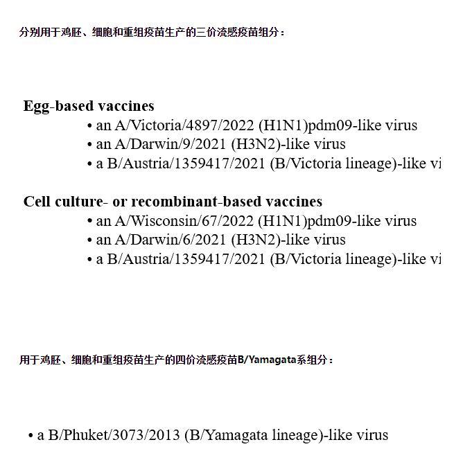据中国国家流感中心,世卫组织推荐的流感疫苗组份为: